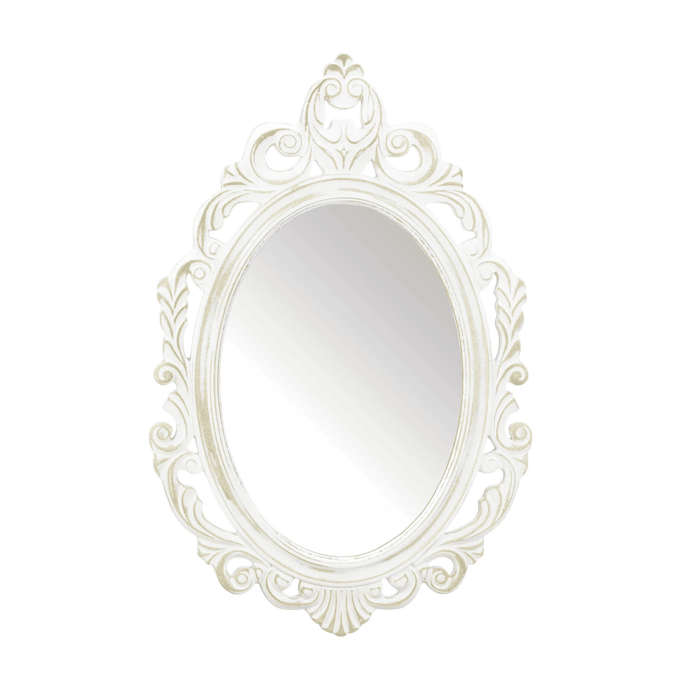 • Make your home look instantly more lavish with this decorative carved mirror. Featuring intricate wood detailing around the distressed frame for a vintage farmhouse look. Made from durable MDF wood, this vintage-inspired oval wall mirror is light yet durable and easy to hang. Mirrors are a great way to enhance a room's personality and fill empty wall space. Add a unique mirror to a guest bath for an easy and quick remodeled look or make your entryway feel larger with a reflective surface.