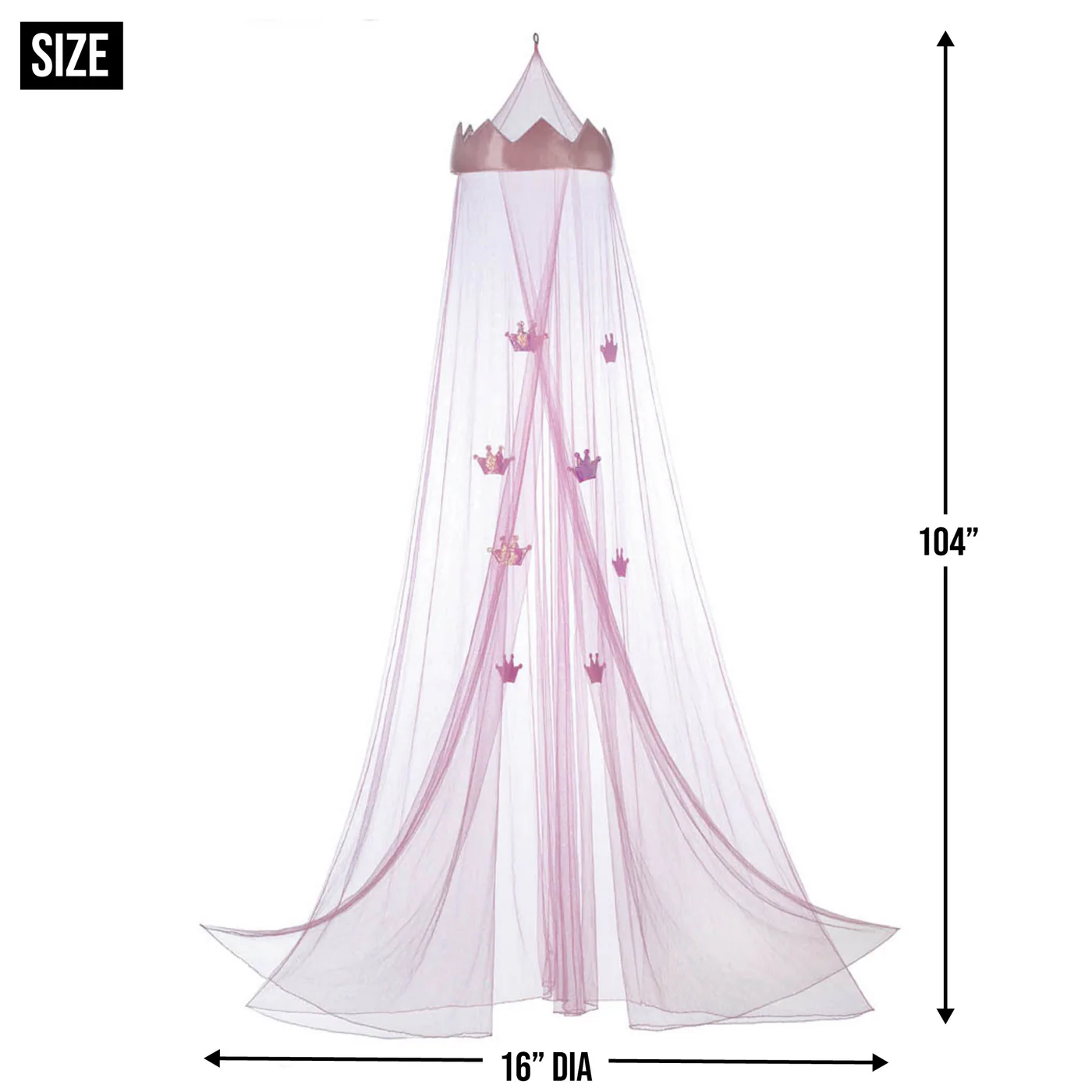 • Sweet dreams start here! Hang this over any "royally" cute child's bed to make bedtime exciting. This adorable pink bed canopy features a large pink crown at the top and tiny crown ornaments hanging from the fine net.